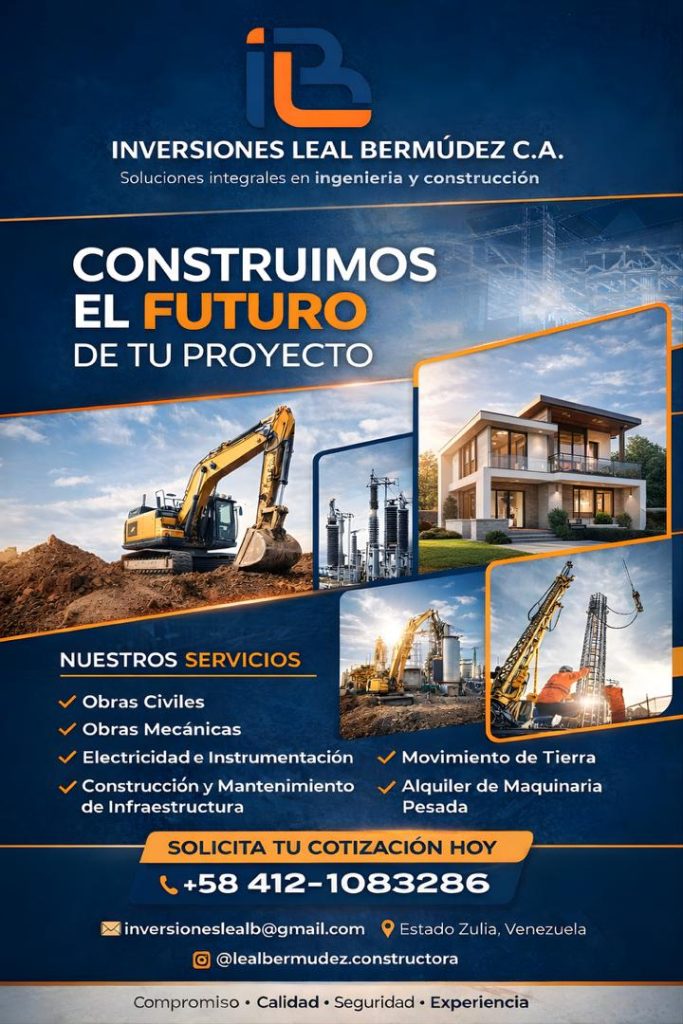 Sobre Inversiones Leal Bermúdez: Es una empresa constructora venezolana especializada en el diseño, ejecución y mantenimiento de proyectos de ingeniería. Con un enfoque en la calidad técnica y el cumplimiento de plazos, ofrecen servicios integrales que impulsan el desarrollo de infraestructura nacional.