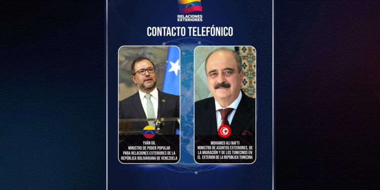 El ministro de Relaciones Exteriores de Venezuela, Yván Gil, informó que sostuvo una conversación telefónica con el canciller de Túnez, Mohamed Ali Nafti, en la que ambas autoridades destacaron el buen estado de las relaciones bilaterales y la disposición de seguir ampliando la cooperación entre ambos países.