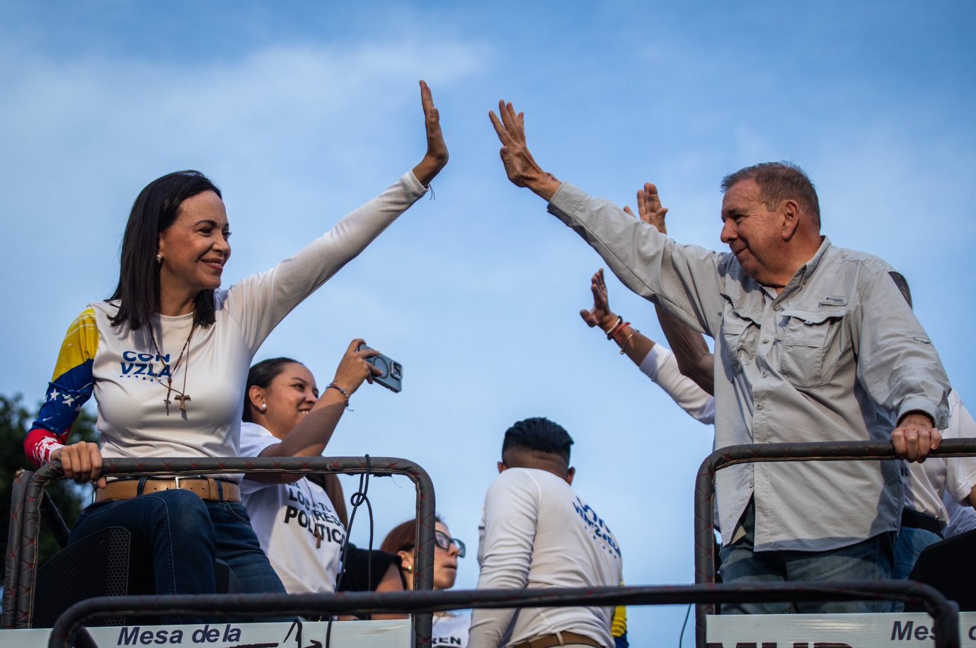 Machado (Caracas, 1967) es la principal líder opositora dentro de Venezuela, donde permanece oculta, mientras que Edmundo González (La Victoria, 1949), quien fue el candidato presidencial opositor, reside exiliado en España desde septiembre de 2024, tras huir del país cuando se emitió una orden de detención en su contra después de que Maduro se autoproclamara vencedor de las elecciones.