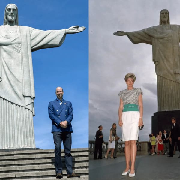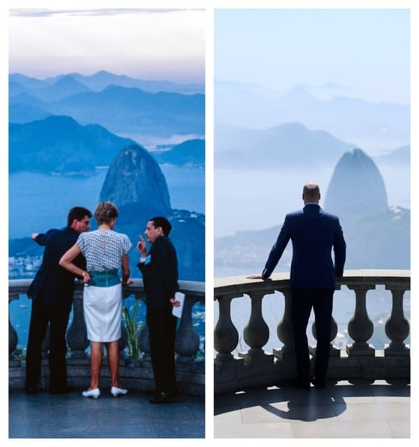 El primer gesto ocurrió en la cima de la Montaña del Corcovado, donde William posó frente al icónico Cristo Redentor, en el mismo lugar donde su madre fue retratada hace más de tres décadas.