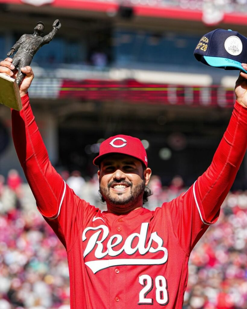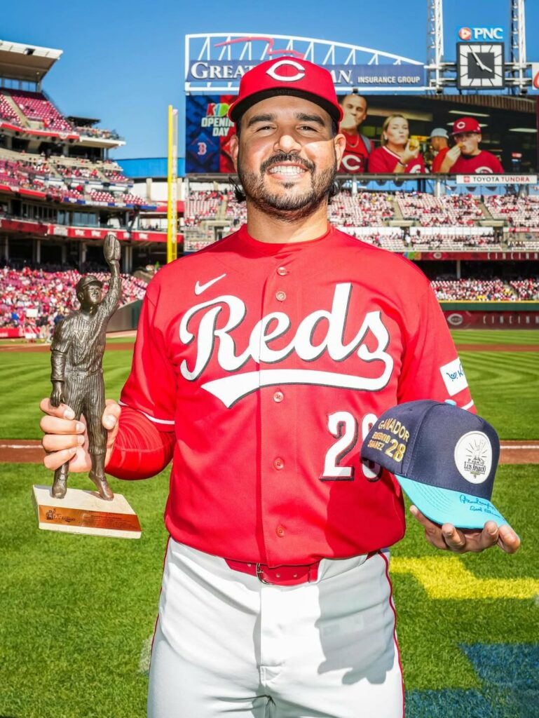 El acto tuvo lugar previo al duelo entre Rojos de Cincinnati y Medias Rojas de Boston. Más allá del trofeo, el protagonismo se lo llevó el encuentro entre dos generaciones: Suárez y la leyenda viviente, David Concepción.