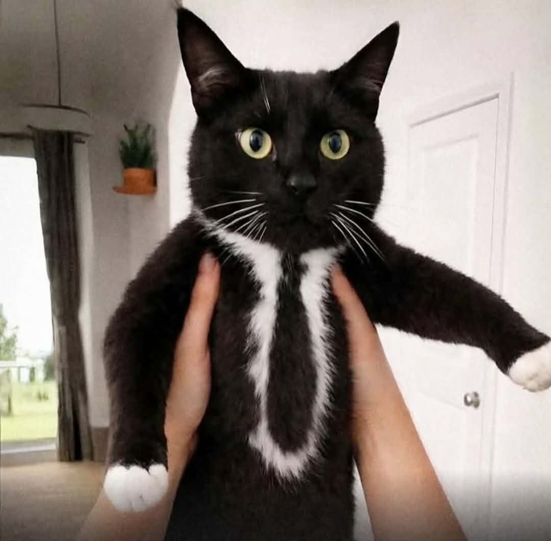 Este gato conquistó internet no porque haga trucos, sino porque la naturaleza lo vistió con un esmoquin perfecto. Su pelaje negro se acomoda como una chaqueta a la medida, y una delgada franja oscura sobre su pecho blanco parece exactamente una corbata. Da la impresión de estar listo para una reunión importante a cualquier hora del día.
