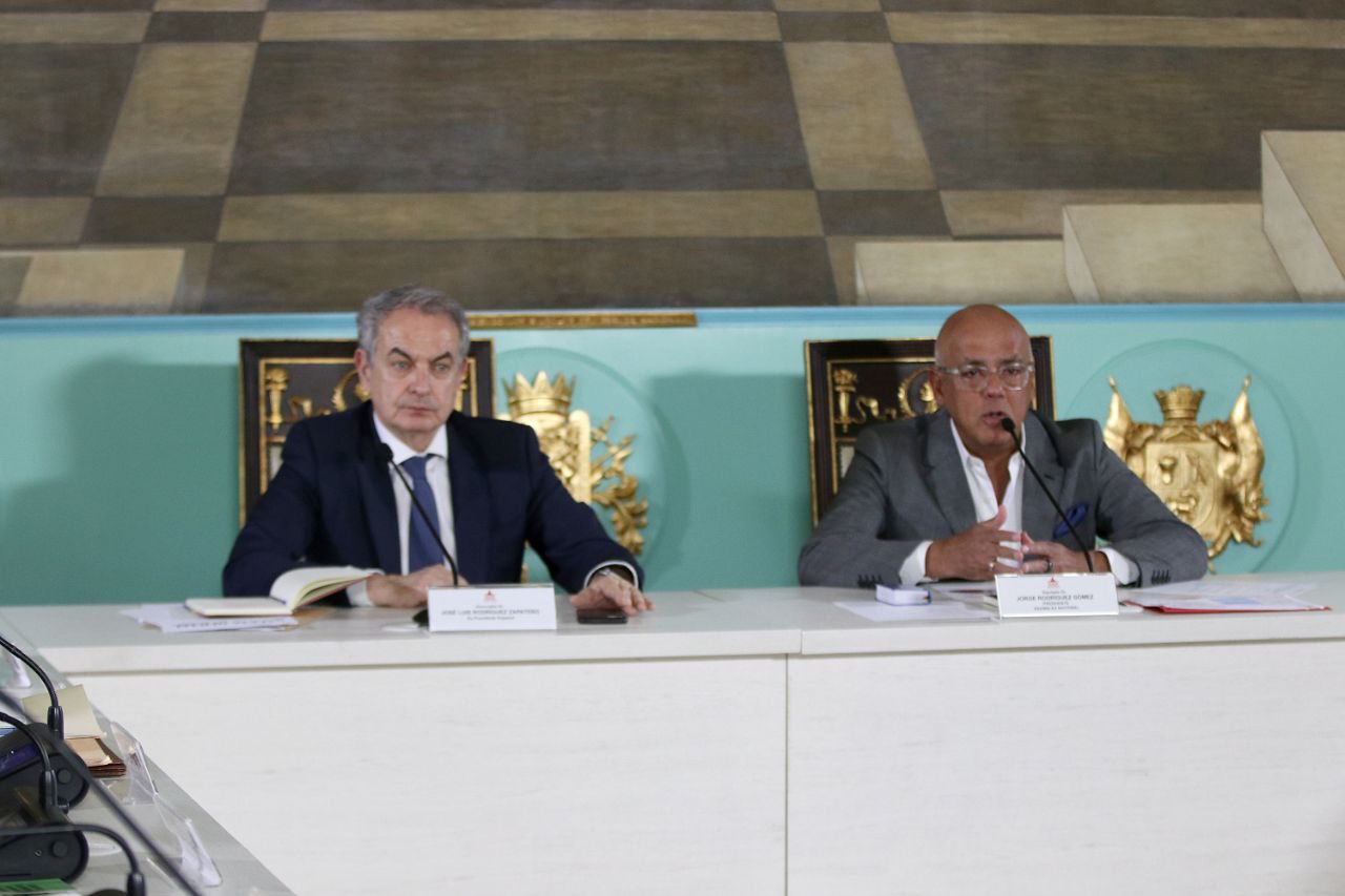 Jorge Rodríguez abundó en elogios hacia Zapatero, llamándolo “amigo y mentor”, “especialista” en amnistía, paz, diálogo “y en Venezuela”.