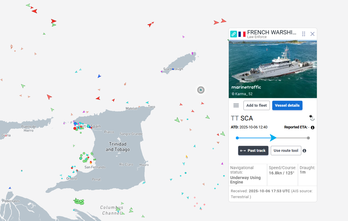 El patrullero (P735) «La Combattante», adscrito a la Armada de Francia, se aproximó el pasado martes a las aguas de Trinidad y Tobago, relativamente cerca del estado Delta Amacuro.