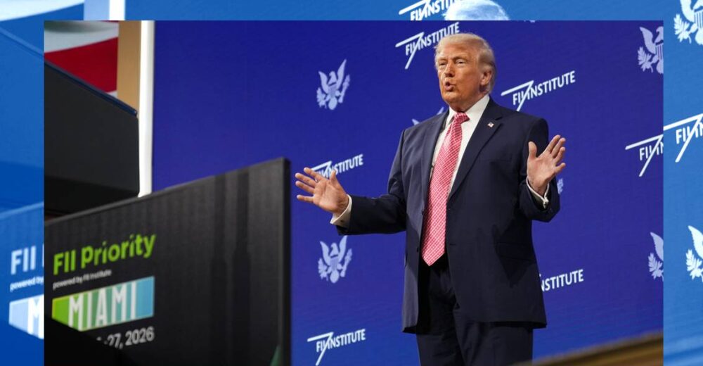 Durante un discurso en el Future Investment Initiative –foro que se celebra en Miami, Florida–, el presidente de Estados Unidos, Donald Trump, afirmó este viernes que al considerar la actividad de la OTAN, su país no tiene por qué «estar ahí» para ellos, en referencia a esos aliados.