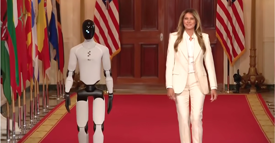 La primera dama de Estados Unidos, Melania Trump, llevó a un invitado sorpresa a un evento en la Casa Blanca el miércoles: un robot humanoide que camina y habla.