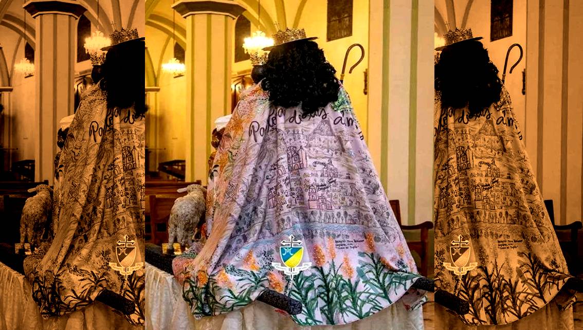 La imagen de la Divina Pastora luce este año un vestido impregnado de arte, fe y, por primera vez, lleva un traje típico como es la vestimenta de tradición cultural del tamunangue, para su visita 168 a Barquisimeto, estada Lara, este 14 de enero. Esta tradición es un acontecimiento de laboriosidad e inspiración devocional, en la indumentaria de la venerada imagen, junto al Niño Jesús que lleva en brazos.