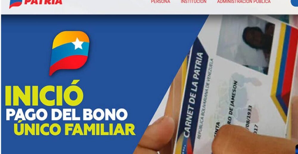 Desde este mièrcoles 04 de febrero de 2026, inició el pago del «Bono Único Familiar», correspondiente al mes en curso, a través de la Plataforma Patria. El Canal Patria Digital indicó a través de sus redes sociales que el monto asignado es de Bs. 5.505 o 14,67 dólares al tipo de cambio vigente del Banco Central de Venezuela (BCV). Este bono es indexado, va dirigido a 6 millones de familias en Venezuela y es distribuido mensualmente.