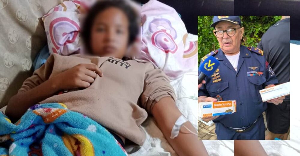Una nueva víctima por mordedura de serpiente fue hospitalizada la mañana de este viernes en el estado Zulia, informó el Mayor (R) de los Bomberos Marinos INEA, Luis Contreras, experto en mordeduras y picaduras de animales ponzoñosos, manifestando además que la pequeña fue mordida por el animal en uno de sus pies.