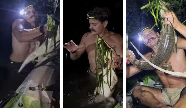En las imágenes se lo ve sacando una baba del agua para mostrarla a cámara. El animal forcejeaba, se retorcía e intentaba zafarse como podía… y en un momento, muerde la mano del influencer.
