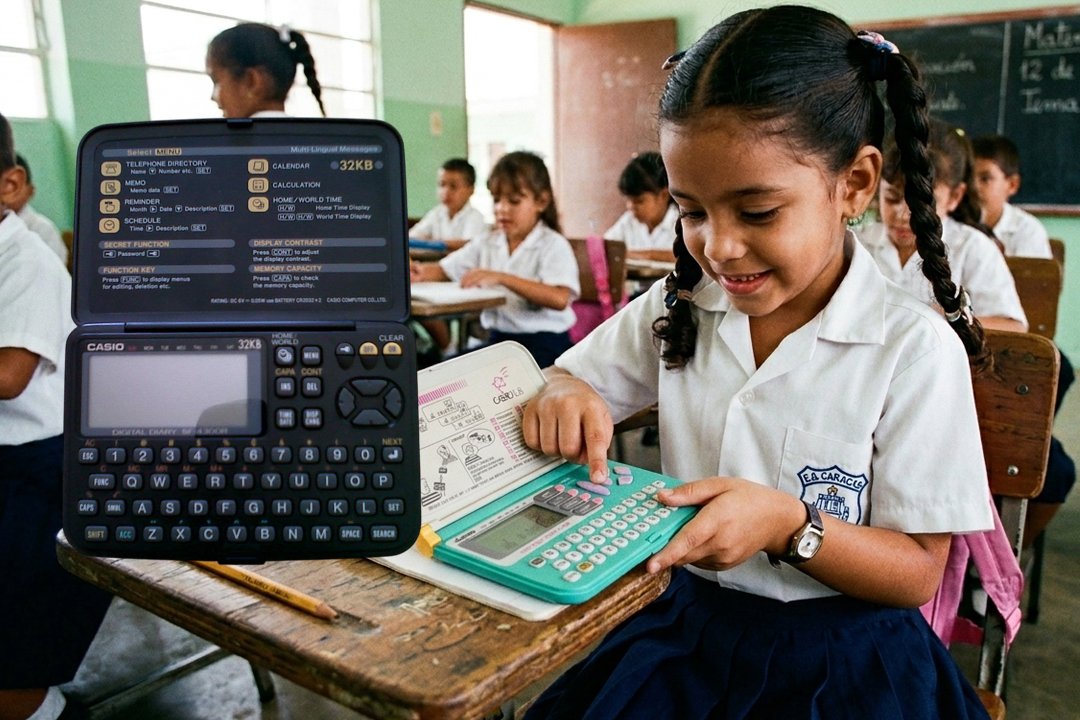 Yo recuerdo la mía: una Casio negra, la Data Bank clásica, con botones duros que crujían bajo mis deditos ansiosos y una pantalla LCD verde. La usaba en el colegio para todo lo que importaba en ese mundo mágico —tareas, contactos de amiguitos para invitarlos a jugar, sacar cuentas para comprar chucherías en el kiosco—.