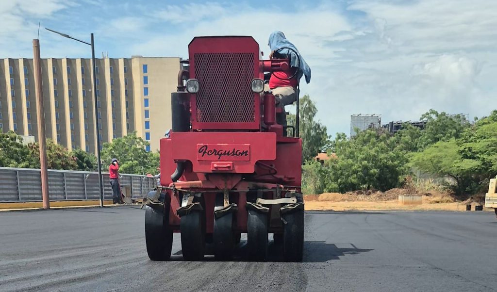 Ramírez especificó que los trabajos iniciaron con la rehabilitación de la pista principal, donde se colocaron 200 toneladas de asfalto en caliente tipo 3, mientras que en las áreas externas se ejecutaron otras 180 toneladas.