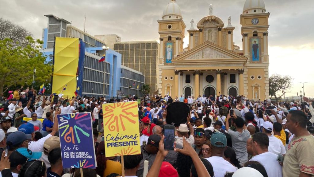 ”Estamos pidiendo con clamor, con fortaleza, que las sanciones y el bloqueo sea levantado. Nos hemos congregado en este gran Boulevard, en este gran paseo de nuestra Chinita, y culminando en la Catedral, la Basílica de Nuestra Señora de Chiquinquirá que nos llena mucho de fe, de esperanza, pero también de que nuestra Presidenta Encargada le pida al mundo que, por favor, levanten las sanciones para que nosotros podamos vivir en paz”, dijo el Burgomaestre local.