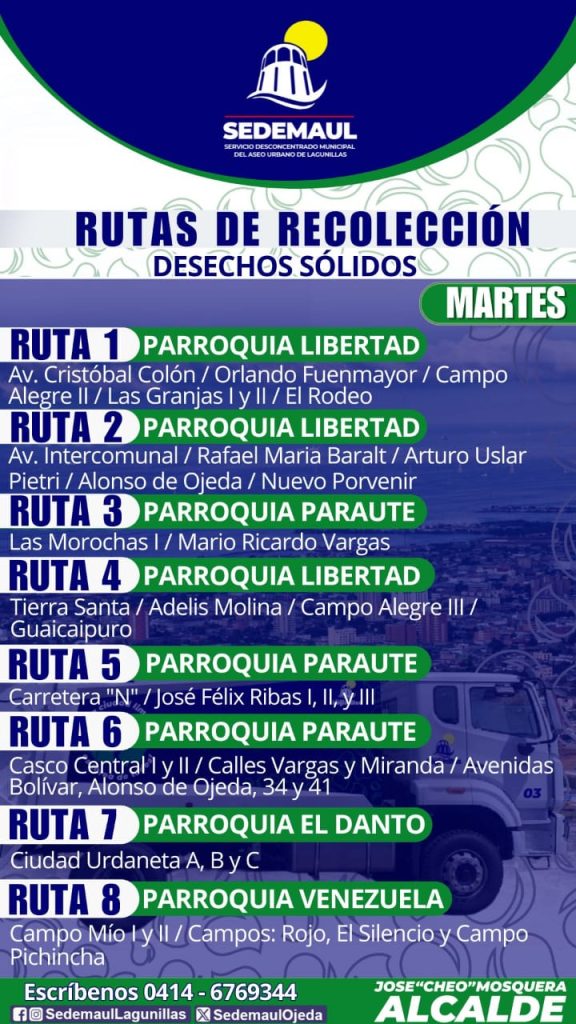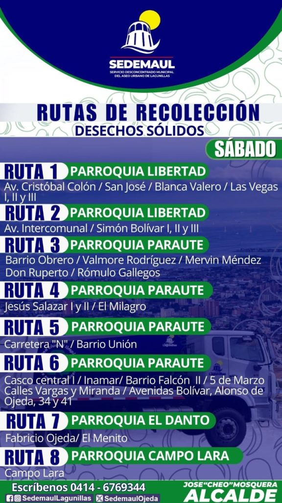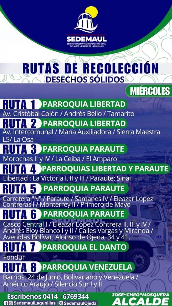 Somos Noticias Col tuvo acceso a las rutas semanales establecidas, las cuales cubren la totalidad de los sectores distribuidos en las seis parroquias del municipio Lagunillas, garantizando así una mayor eficiencia en el servicio.