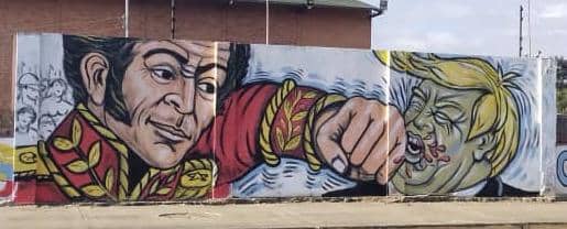 El Mural, de unos dos metros de alto y unos cuarenta a cincuenta metros de ancho muestra una imagen qué al Presidente de EEUU Donald Trump recibiendo un fuerte puñetazo por parte del Libertador de América Simon Bolívar en clara alusión al rechazo del pueblo venezolano por las últimas acciones militares del Gobierno estadounidense en contra del Presidente Nicolás Maduro y la Primera Combatiente Cilia Flores.