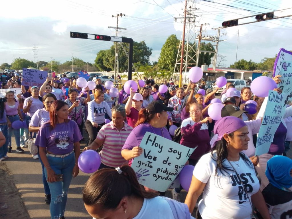 De nuevo, reviviendo la consigna Ni una más, este viernes 17 de abril cientos de mujeres y hombres cabimenses marcharon en las inmediaciones de la Avenida 32, esto para manifestar su respaldo contundente a una jóven de 27 años de edad quién habría sido golpeada salvajemente por su concubino un comerciante que también es un funcionario de la Policía Municipal de esta localidad.