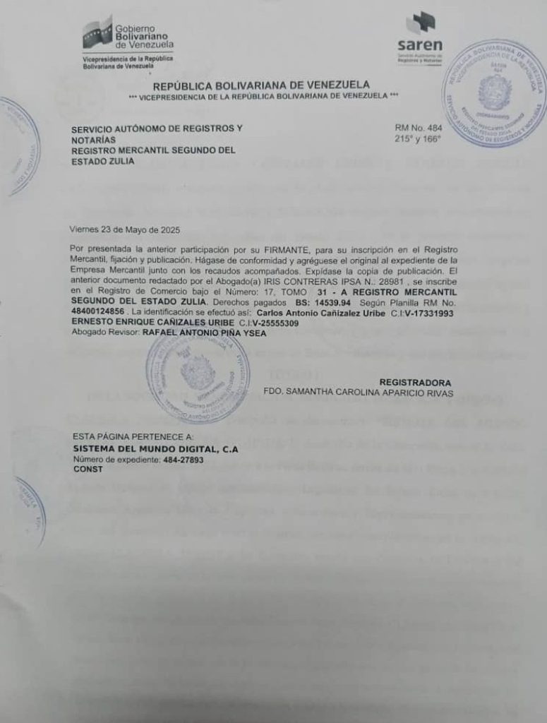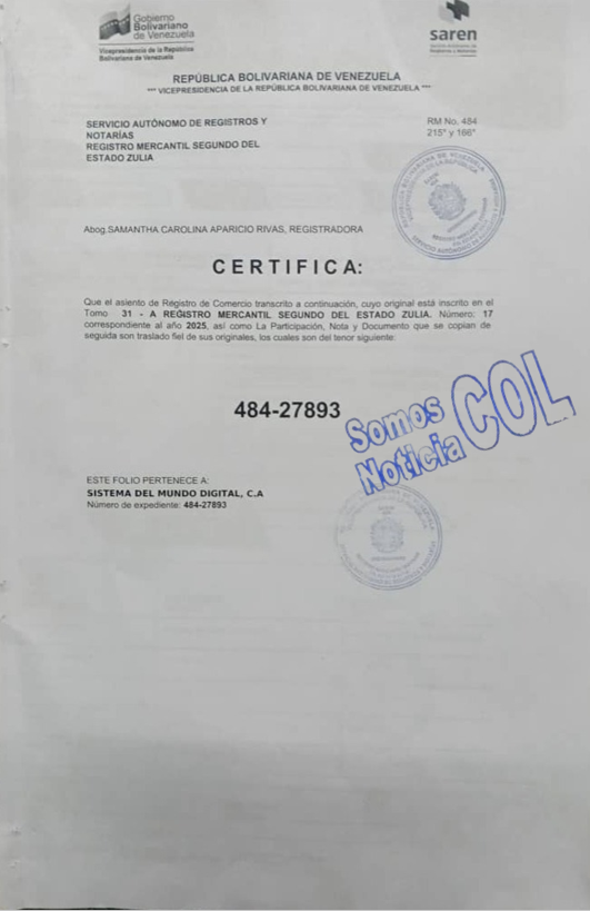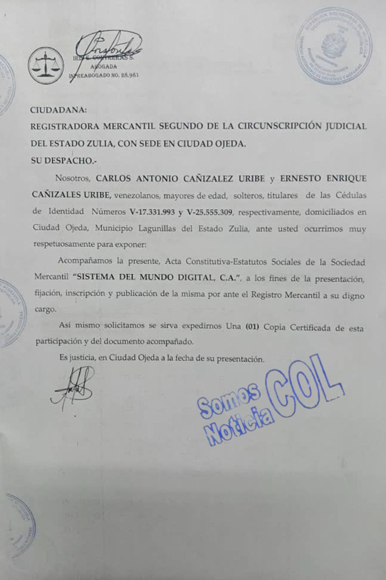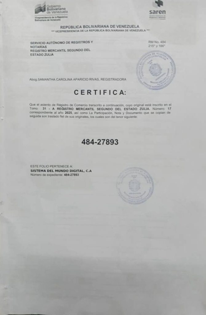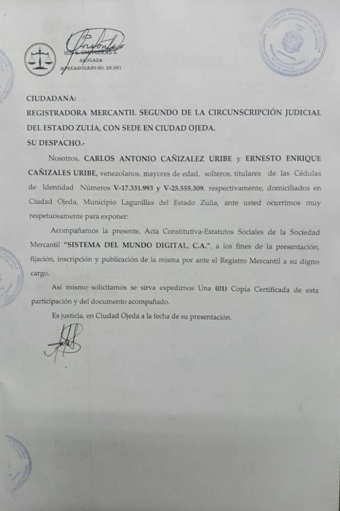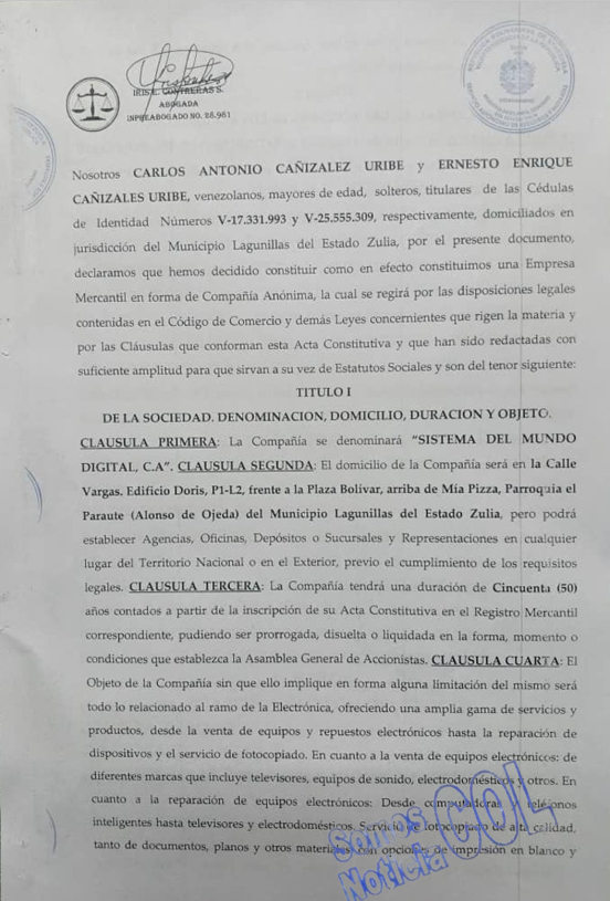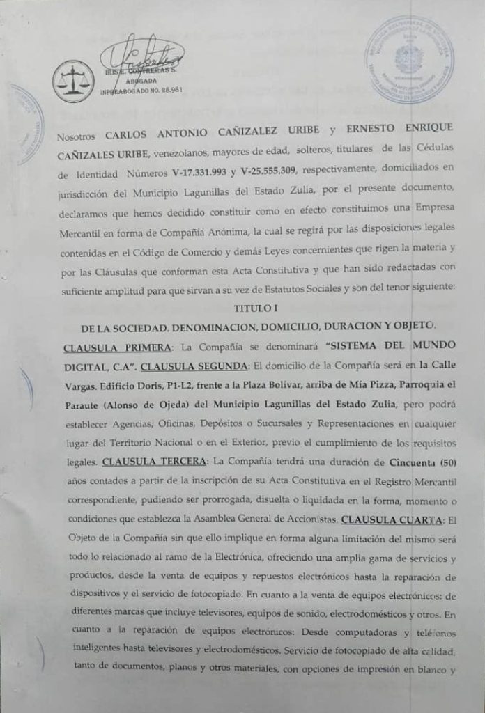 MUNICIPIO LAGUNILLAS | ACTA CONSTITUTIVA – ESTATUTOS SOCIALES DE LA SOCIEDAD MERCANTIL «SISTEMA DEL MUNDO DIGITAL, CA»