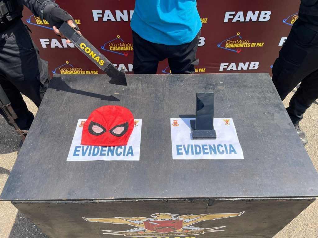 Durante el procedimiento, los efectivos militares incautaron elementos clave que vinculan al detenido con los hechos investigados entre ellos, un equipo móvil marca ZTE, modelo Blade A34, el cual será sometido a experticias para extraer información relevante sobre la estructura criminal, una máscara de cosplay (Spiderman), presuntamente utilizada para ocultar su identidad durante la grabación de videos y la ejecución de actos delictivos.