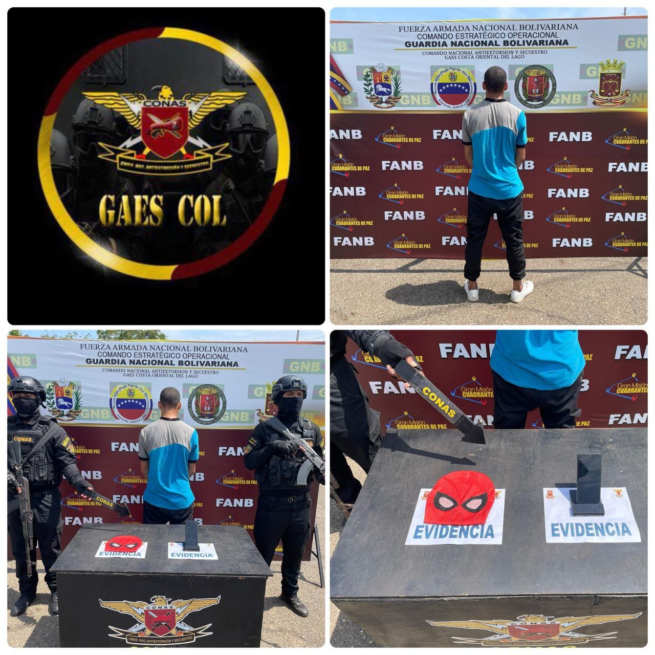 Durante el procedimiento, los efectivos militares incautaron elementos clave que vinculan al detenido con los hechos investigados entre ellos, un equipo móvil marca ZTE, modelo Blade A34, el cual será sometido a experticias para extraer información relevante sobre la estructura criminal, una máscara de cosplay (Spiderman), presuntamente utilizada para ocultar su identidad durante la grabación de videos y la ejecución de actos delictivos.