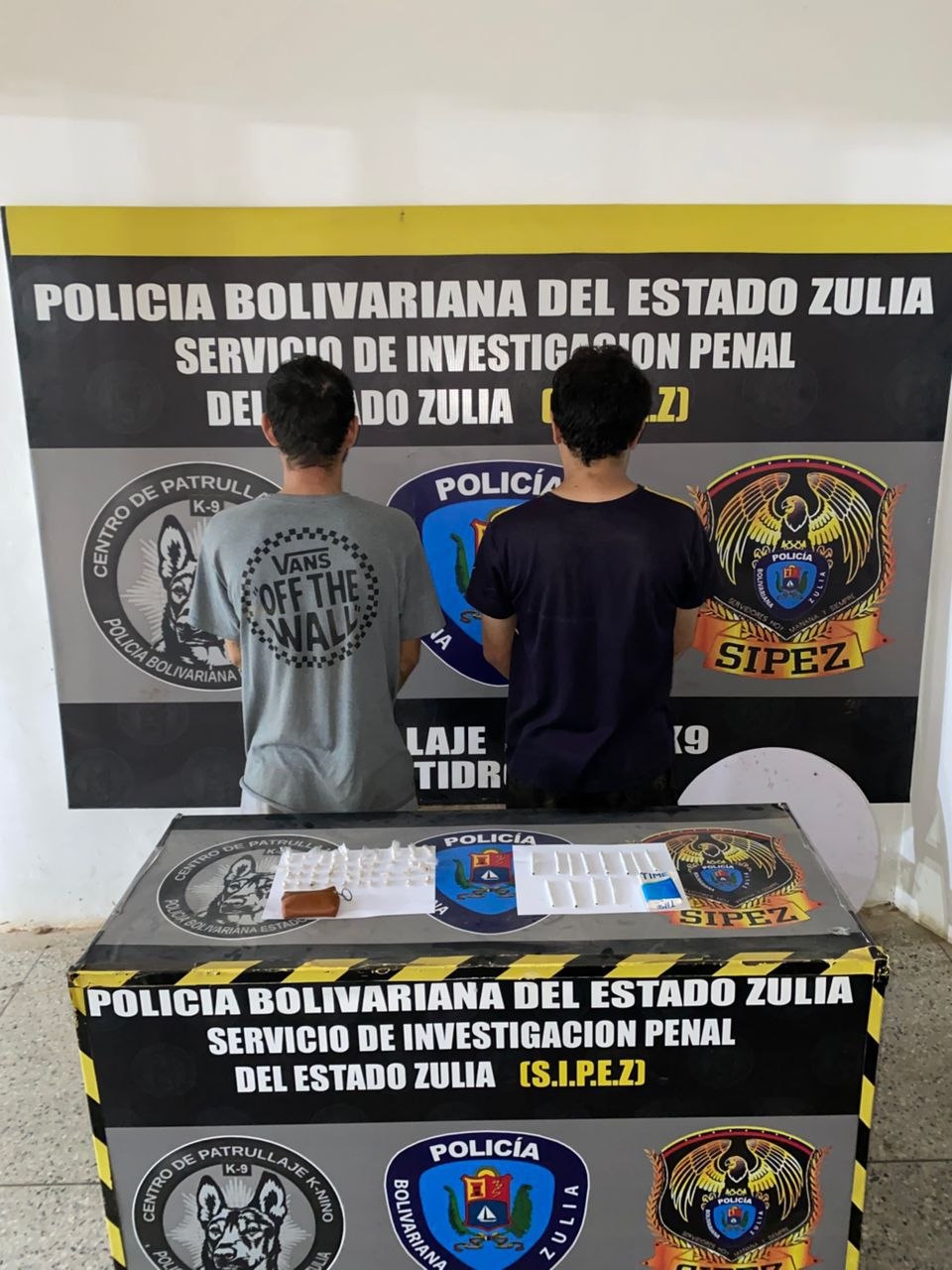 Oficiales del Cuerpo de Policía Bolivariana del Estado Zulia (CPBEZ), adscritos al Centro de Patrullaje K-nino (CPK-9), realizaron la aprehensión de Elijabiel Urdaneta Rodríguez y Brayan Alan Reales Ortega, ambos de 33 años de edad, durante un despliegue de patrullaje intensivo en el barrio Ciudad Lossada, parroquia Idelfonso Vásquez de Maracaibo.