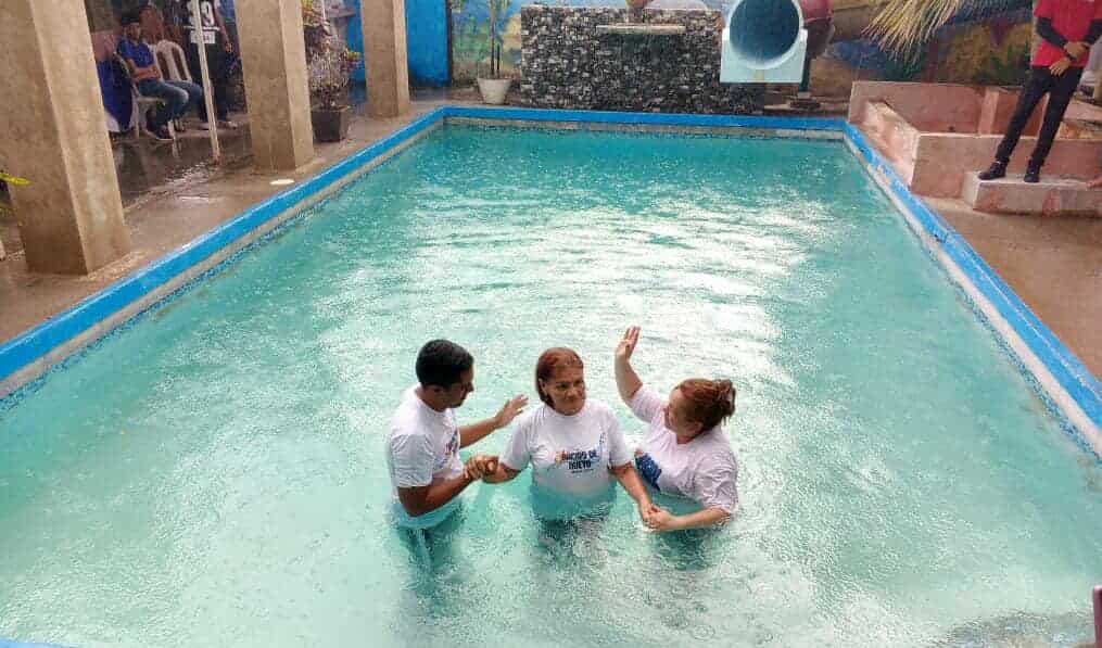 Antes de la ceremonia del bautismo, la pastora Thais de Arias dió a conocer la disposición de cada uno de los 15 que serían bautizados, » con mucho gozo conozco el proceso de cada uno de ustedes para llegar hasta aquí y se que están más que listos para recibir al Señor».
