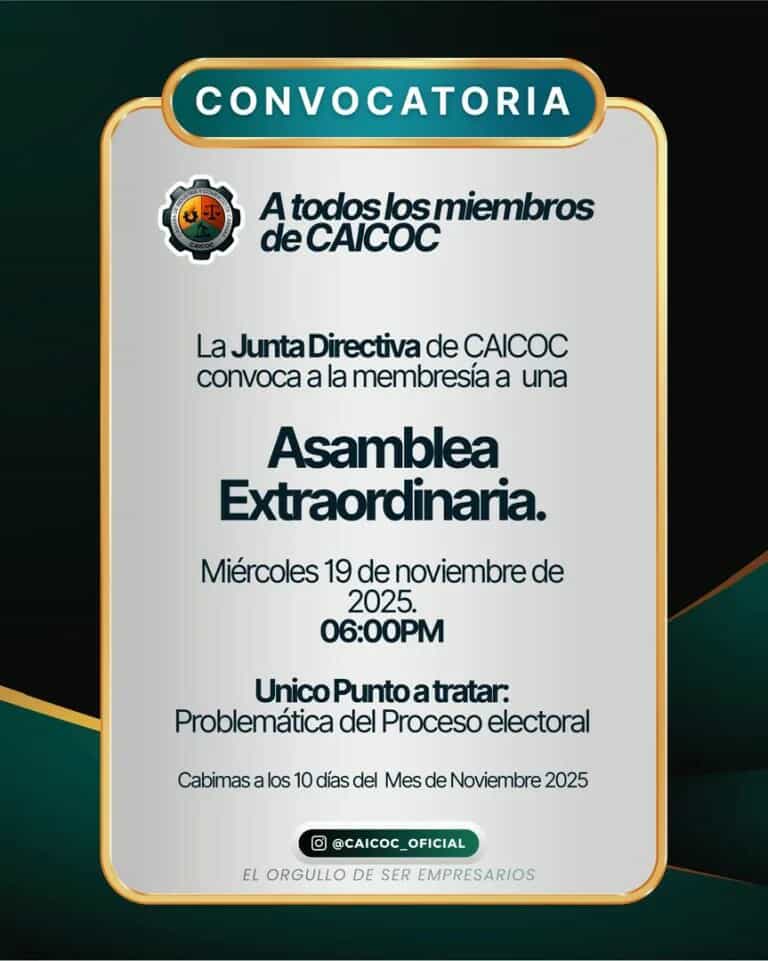 A través del Comunicado, la Junta Directiva de CAICOC hace un llamado extensivo a toda la membresía en general para que asistan y puedan entre todos buscar un consenso definitivo en torno a las elecciones internas que están pautadas para el próximo 24 de noviembre y donde se renovaran los miembros de la máxima directiva de la cúpula empresarial cabimense.