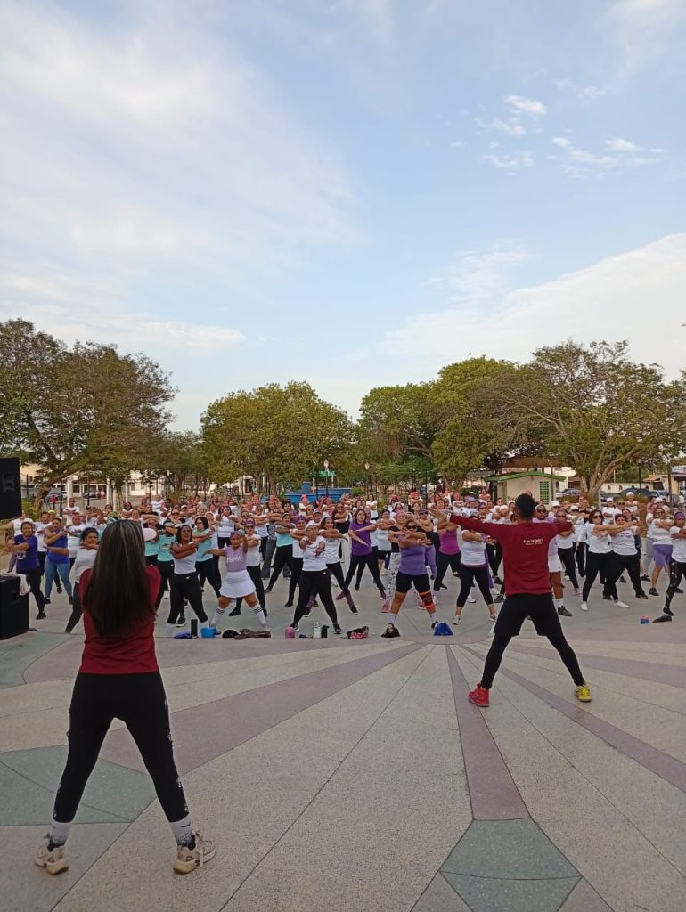 La jornada estuvo dirigida por los reconocidos instructores Alejandra Yedra, Joseli López y Robert Bonias, quienes motivaron a las asistentes con rutinas de ejercicio rítmico diseñadas para fomentar la salud física y el sano esparcimiento.
