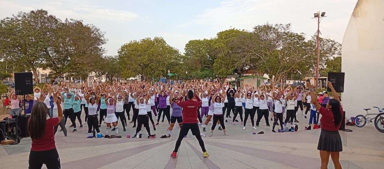 La jornada estuvo dirigida por los reconocidos instructores Alejandra Yedra, Joseli López y Robert Bonias, quienes motivaron a las asistentes con rutinas de ejercicio rítmico diseñadas para fomentar la salud física y el sano esparcimiento.