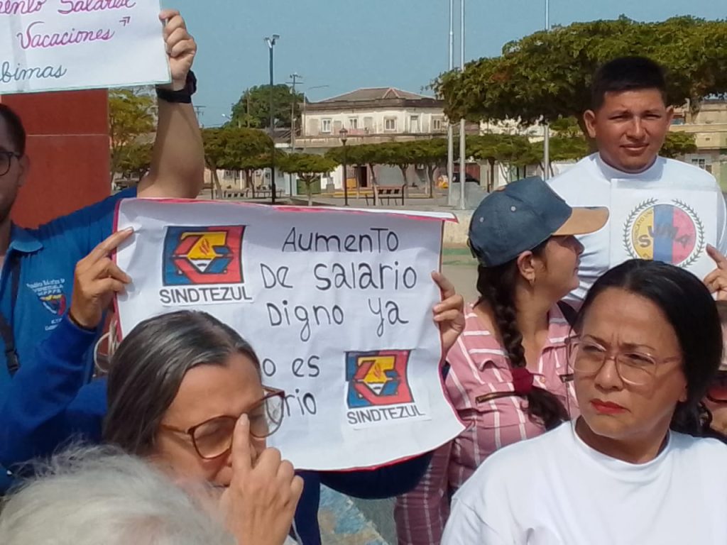 A pocos días de la celebración del 1 de mayo y en medio de las espectativas creadas por los anunció de reajuste salarial , este martes 21 de Abril representante de los sindicatos del sector educación en el municipio Cabimas realizaron una nueva manifestación para exigir un salario real y digno en el país.