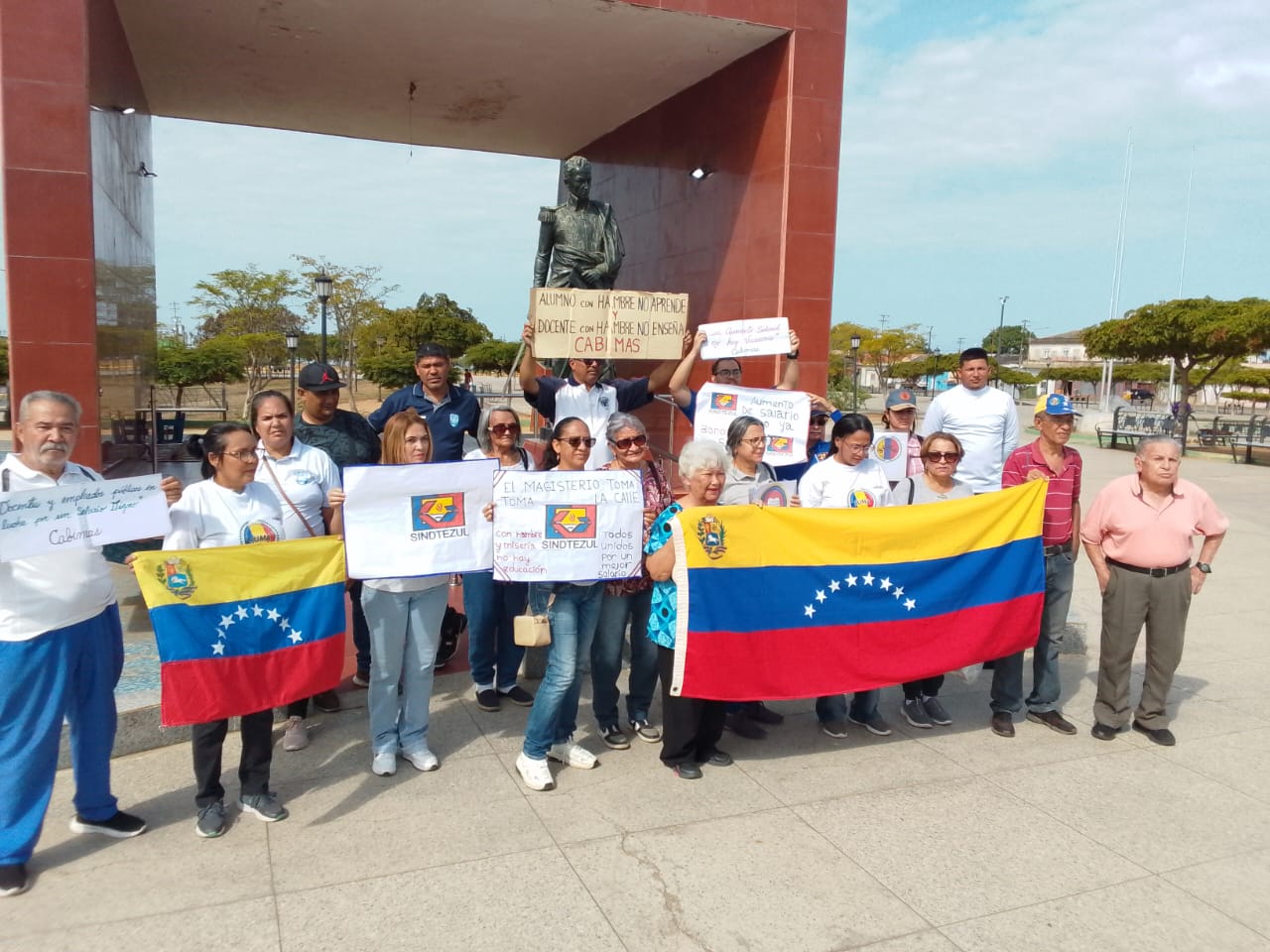 La actividad, se realizó en horas de la mañana en las inmediaciones de la Plaza Bolívar Bicentenaria de esta ciudad y estuvo emcabezada por Yajaira Hernández representante del Sindicato Único del Magisterio Zuliano (SUMA) en Cabimas y de la coalición magisterial, además de otros representantes de las agrupaciónes sindicales de este importante sector productivo y de otros gremios como el sector de jubilados y pensionados y de los trabajadores universitarios.