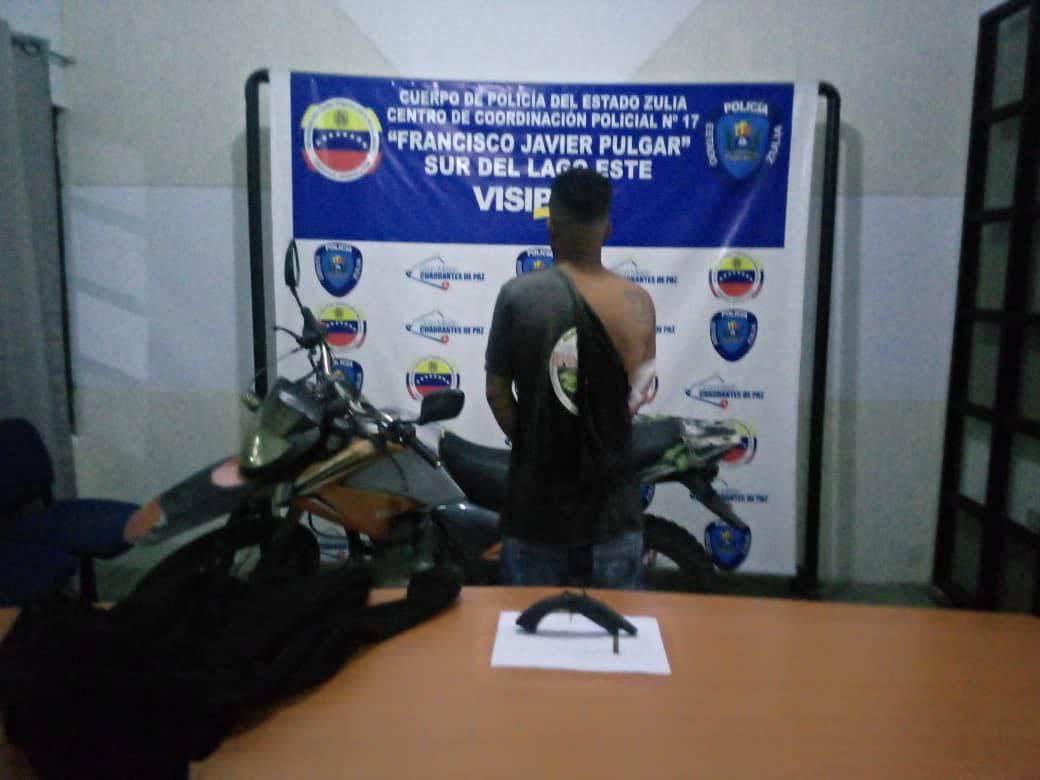 Oficiales del Cuerpo de Policía Bolivariana del estado Zulia (Cpbez), adscritos al Centro de Coordinación Policíal N⁰17 FJP, capturaron a Humbert Yohandry Vanegas Soto, de 27 años de edad, quien se desplazaba encapuchado a bordo de una motocicleta, en horas nocturnas, portando un arma de fuego.