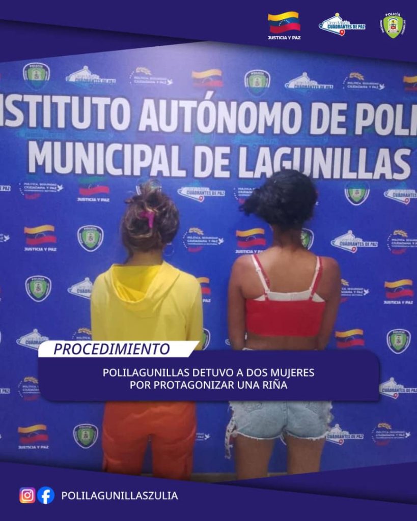 Funcionarios del Instituto Autónomo de Policía del Municipio Lagunillas detuvieron a dos ciudadanas por protagonizar una riña en la Av. Arterial 7, en horas de la tarde de este 23 de enero de 2026.