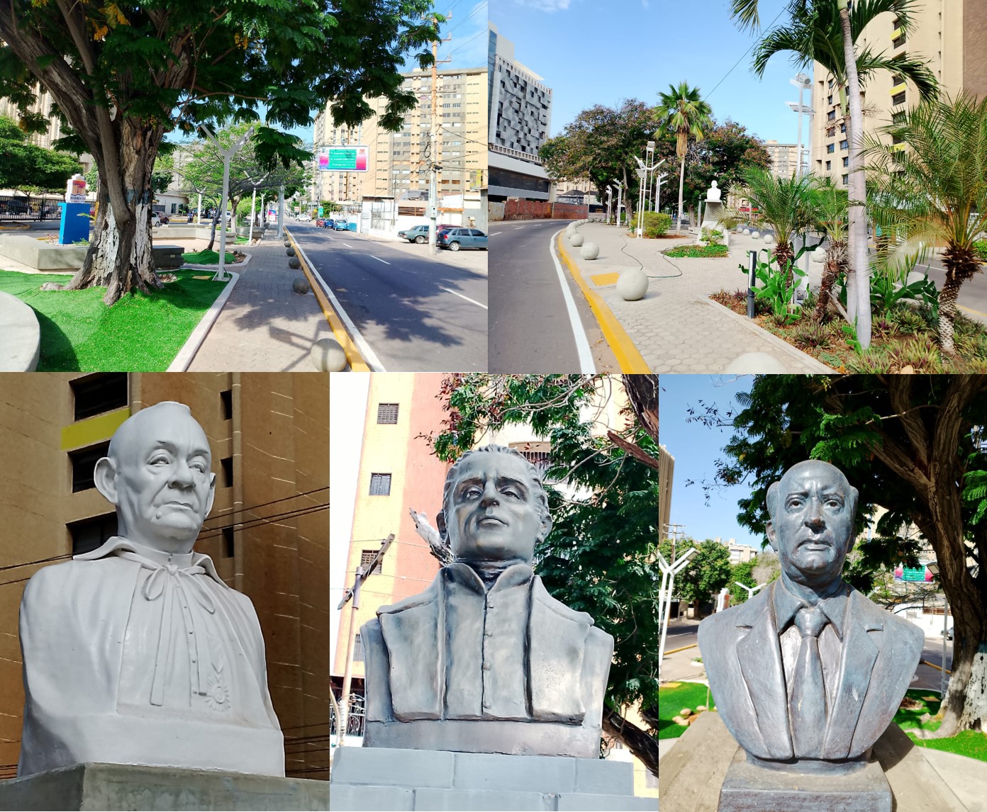 Comienzan en la esquina de La Romelia, popular panadería de exquisiteces únicas, allì el busto de Louis Braille, ese genio francés que inventó la lectura para los invidentes; sigue, Monseñor Olegario Villalobos, adusto y señorial y finaliza el espacio dedicado para recordar a Jóvito Villalba, pensador, orador de verbo inigualable, con una vida ejemplar y digna.