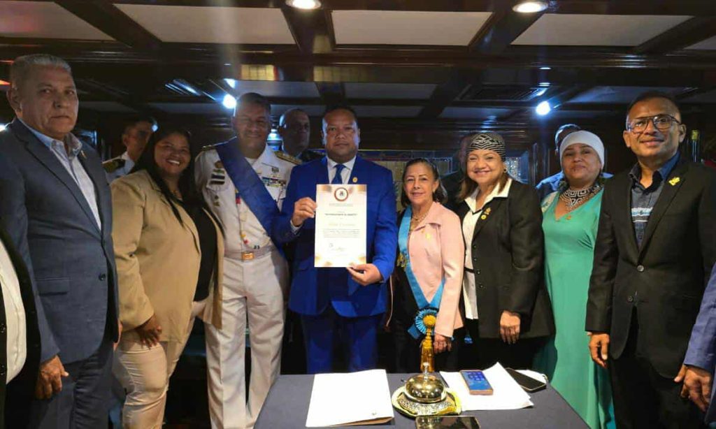 La presidenta del Poder Legislativo regional, Magdely Valbuena Muñoz, en compañía de los legisladores y legisladoras, hicieron entrega de la Orden «Rafael María Baralt» en su «Segunda Clase», al Comandante del «Embajador sin Fronteras», Contralmirante Ronald Briceño Huerta, por su importante y destacada labor al frente de esta histórica embarcación venezolana, insignia de la Armada Bolivariana.