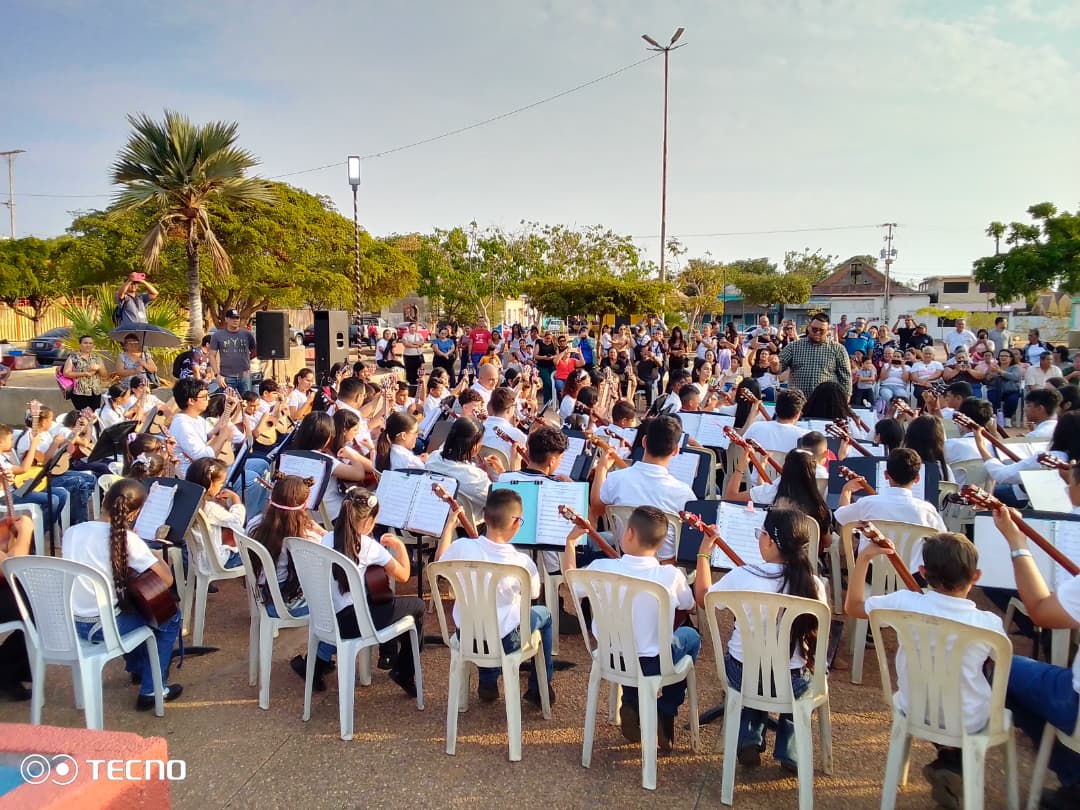 Al ritmo de cuatro cuerdas más de 100 estudiantes pertenecientes al núcleo ofrecieron un emotivo homenaje que contó con un repertorio de reconocidos temas de la música tradicional de este país.