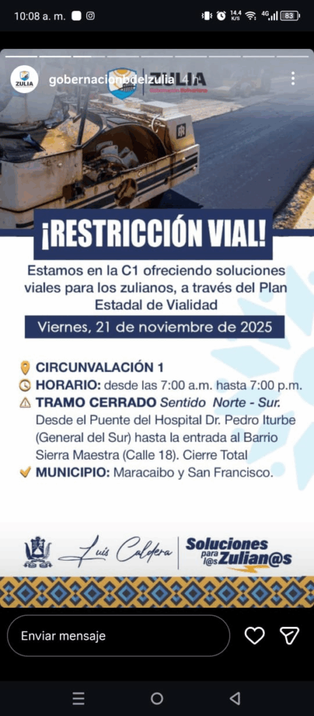 La Gobernación del Zulia, anunció este viernes 21 de noviembre, el cierre parcial de algunas avenidas del municipio San Francisco y Maracaibo por trabajos de reasfaltado.