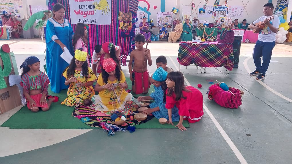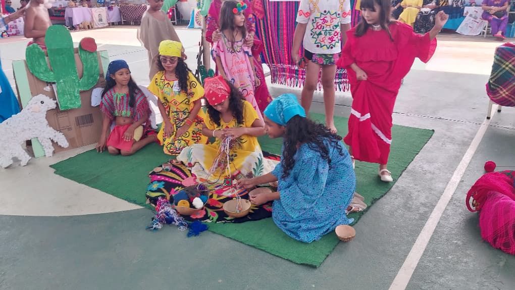 Las alumnas recitaron, cantaron y dramatizaron historias ancestrales, como la leyenda de la araña Waleker, mientras que los docentes entonaron el Himno Nacional y del estado Zulia en lenguas indígenas, reforzando la identidad cultural.