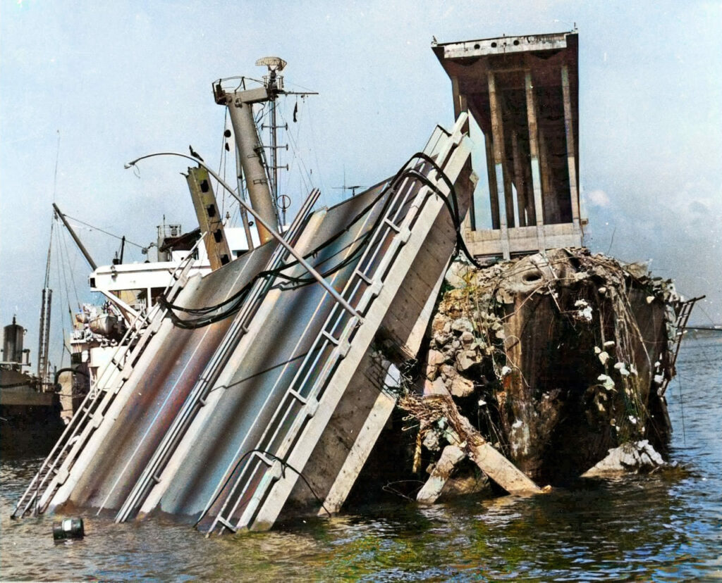 De acuerdo con los relatos históricos, el buque transportaba 262 mil barriles de petróleo crudo y tenía una capacidad de 36.000 toneladas de desplazamiento. El choque provocó el derrumbe de 259 metros de la estructura y dejó una profunda huella en la memoria zuliana.