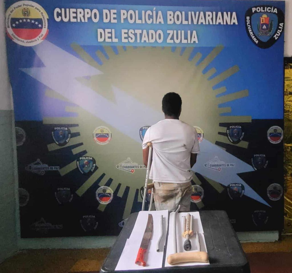 En Pueblo Nuevo de Machiques, fue arrestado “El Muleta” identificado como Rafael Antonio Álvarez Mosquera, quien atacó a su vecina, además, de amenazarla de muerte con un machete y una muleta; el otro hecho se registró en el sector Cuatricentenario, de Maracaibo, donde fue apresado Jorge Eliecer Casadiego Bastida (30), quien agredió a su progenitora de manera verbal y psicológica.